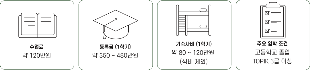 꿈은 나로부터, 미래는 경성으로부터 경성대학교 Kyungsung University 1955년 개신교 정신을 바탕으로 설립된 부산광역시 남구에 위치한 젊고 문화적인 캠퍼스 분위기로 유명한 4년제 사립 종합대학교입니다. 인문,예술,디자인, 미디어 계열의 강점을 중심으로, 창의성과 감성을 중시하는 교육을 제공합니다. 광안리 해변과 인접한 열린 환경 속에서 다양한 문화예술 활동이 이루어지고 있으며, 학생들이 자유롭게 표현하고 성장할 수 있는 학습 분위기를 조성하고 있습니다. 공통 비자 (D-2/D-4) 준비 서류 대부분의 대학교에 공통적으로 요구되는 비자 서류는 다음과 같습니다. 단, 학교나 개인의 상황에 따라 추가 서류가 요구될 수 있으니, 반드시 해당 학교의 최신 모강 요집을 확인 해야합니다.